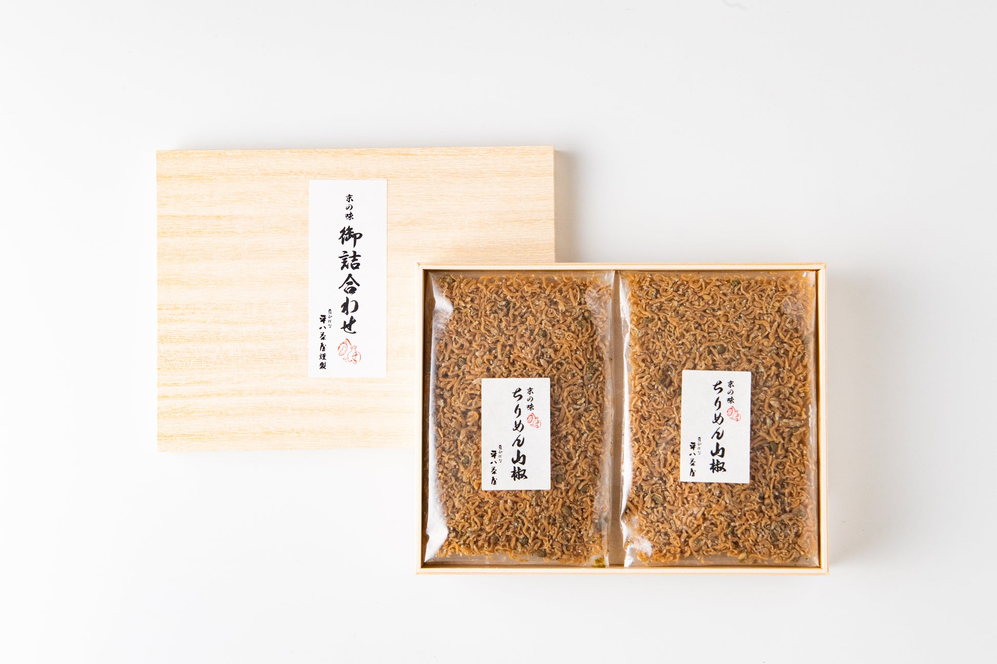 上質のちりめんじゃこを選り分け、少し大きめのものだけを選んで、醤油と砂糖で焚き込んでいきます。香り高き実山椒はほどよい醤油風味のじゃこの中でぴりりと効いて、酒の肴として、またご飯のお供としてお召し上がりいただけます。